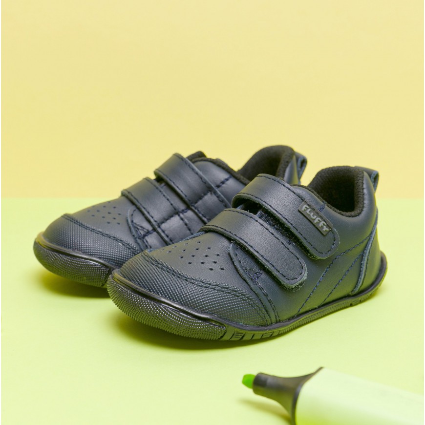 Perfecta zapatilla deportiva para NIÑOS de piel, original FLUFFY STEPS. Una deportiva SUPER CONFORTABLE, con acabados de primera calidad, y fabricada íntegramente en ESPAÑA. Con exterior en genuina PIEL PREMIUM, y puntera reforzada anti rozaduras y anti impactos extra resistente con efecto pingpong. Incorpora dos velcros regulables para un ajuste perfecto, con gran amplitud en el calce y CONFORT TÉRMICO EXTRA, ya que están realizadas con forro técnico de rejilla foamizada que aporta ligereza y beneficia la adaptabilidad, y con plantilla plana extraíble, TRANSPIRABLE PLUS de MICROLINING, un material super absorbente y más transpirable que la piel. Con propiedades termorreguladoras, antialérgicas, antibacterianas y muy resistente al roce, que controla el sudor, evita malos olores, y mantiene los pies siempre protegidos. Características por su horma ancha anatómica altamente adaptable que simula la forma natural del pie acunando su forma original, y que facilita la libertad de movimientos en la zona de los deditos. Unas zapatillas especialmente diseñadas para los pies de los niños porque están fabricadas sin contrafuertes y sin estabilizadores, y especialmente flexibles por la zona del metatarso. Con suela totalmente plana, sin drop, de 3.5mm, con tecnología FLEXIGRIP, que proporciona una flexibilidad extra y agarre superiores. Un zapato super todo terreno para los más pequeños, que cumple con todas las características que recomiendan los mejores profesionales pediátricos, e ideales para cualquier ocasión. ¡Pies sanos, niños felices!