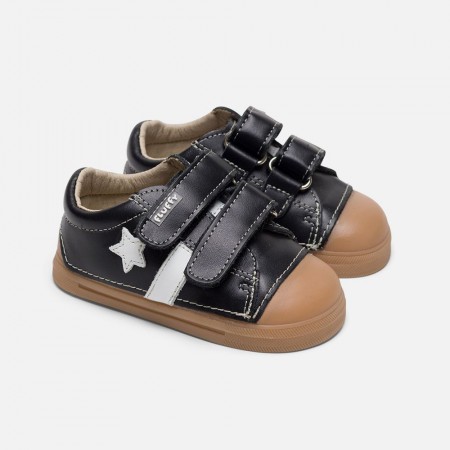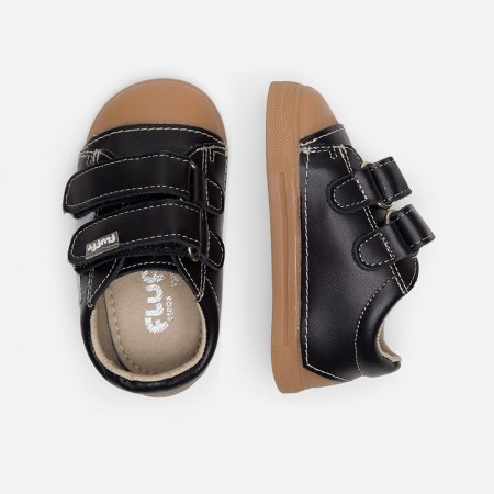 Espectacular zapatilla deportiva respetuosa para NIÑOS de piel, original FLUFFY STEPS. Una zapatilla respetuosa SUPER CONFORTABLE, con acabados de primera calidad, y fabricada íntegramente en ESPAÑA. Con exterior en genuina PIEL PREMIUM, y puntera reforzada anti rozaduras y anti impactos extra resistente con efecto pingpong. Velcros regulables para un ajuste perfecto, con gran amplitud en el calce y CONFORT TÉRMICO EXTRA, ya que están realizadas con forro técnico, TERMOREGULADOR, y con plantilla plana extraíble, TRANSPIRABLE PLUS de MICROLINING, un material super absorbente y más transpirable que la piel. Con propiedades termorreguladoras, antialérgicas, antibacterianas y muy resistente al roce, que controla el sudor, evita malos olores, y mantiene los pies siempre protegidos. Características por su horma ancha anatómica altamente adaptable que simula la forma natural del pie acunando su forma original, y que facilita la libertad de movimientos en la zona de los deditos. Unas zapatillas respetuosas especialmente diseñadas para los pies de los niños porque están fabricadas sin contrafuertes y sin estabilizadores, y especialmente flexibles por la zona del metatarso. Con suela totalmente plana, sin drop, de 3.5mm, con tecnología FLEXIGRIP, que proporciona una flexibilidad extra y agarre superiores. Un zapato super todo terreno para los más pequeños, que cumple con todas las características que recomiendan los mejores profesionales pediátricos, e ideales para cualquier ocasión. ¡Pies sanos, niños felices!