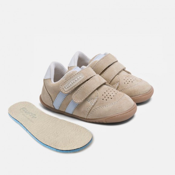 Edición limitada en serraje de nuestra mítica deportiva Fluffy One Sala. Una zapatilla para NIÑOS de piel, original Fluffy Steps, SUPER CONFORTABLE, con acabados de primera calidad, y fabricada íntegramente en ESPAÑA. Con exterior en piel de serraje con tratamiento hidrofugante repelente al agua, para que tu peque supere los primeros charcos feliz y con soltura. Incorpora dos velcros regulables para un ajuste perfecto, con gran amplitud en el calce y CONFORT TÉRMICO EXTRA, ya que están realizadas con forro técnico de rejilla foamizada que aporta ligereza y beneficia la adaptabilidad, y con plantilla plana extraíble, TRANSPIRABLE PLUS de MICROLINING, un material super absorbente y más transpirable que la piel. Con propiedades termorreguladoras, antialérgicas, antibacterianas y muy resistente al roce, que controla el sudor, evita malos olores, y mantiene los pies siempre protegidos. Características por su horma ancha anatómica altamente adaptable que simula la forma natural del pie acunando su forma original, y que facilita la libertad de movimientos en la zona de los deditos. Unas zapatillas especialmente diseñadas para los pies de los niños porque están fabricadas sin contrafuertes y sin estabilizadores, y especialmente flexibles por la zona del metatarso. Con suela totalmente plana, sin drop, de 3.5mm, con tecnología FLEXIGRIP, que proporciona una flexibilidad extra y agarre superiores. Un zapato super todo terreno para los más pequeños, que cumple con todas las características que recomiendan los mejores profesionales pediátricos, e ideales para cualquier ocasión. ¡Pies sanos, niños felices!
